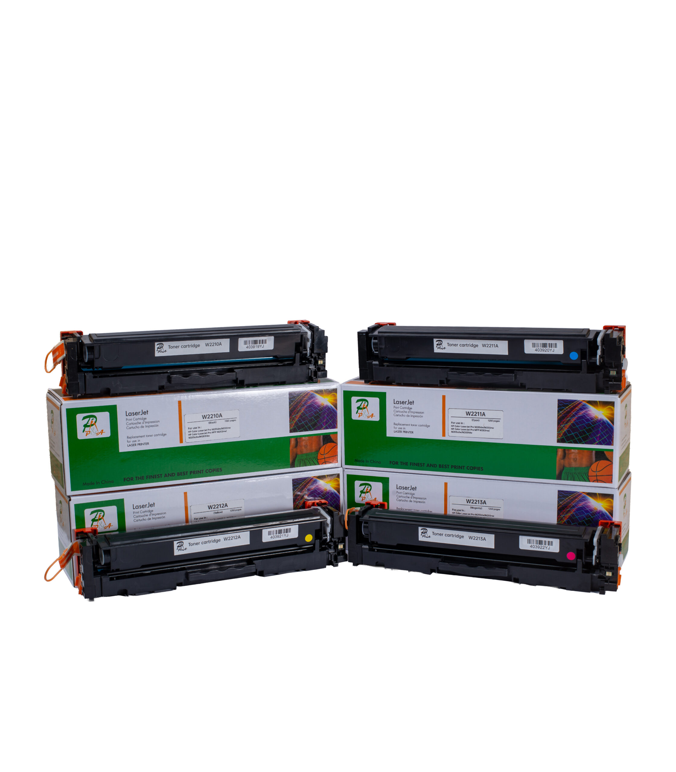 High-quality color toner cartridges designed for HP Color LaserJet Pro printers. Deliver sharp black text and vibrant color output, ideal for home, small office, and professional printing environments.